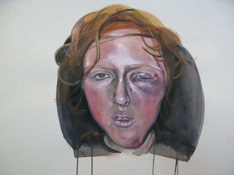 Jess Wheaton has embarked on a lifelong project of making a painting from every photo anyone she knows has ever taken (and will take) of themselves with a messed-up mug. A visual saga of temporary personal disaster has already begun to build. Come see.