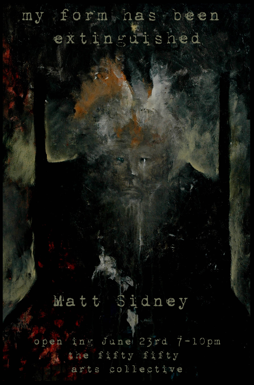 refer to facebook page and website for volunteer-run hours My Form Has Been Extinguished is an expression of self-deconstruction through ritual. An extinguishing flame, followed by the loss of self. An embrace of chaos. A flicker of light on elements forgotten, lost, hidden.